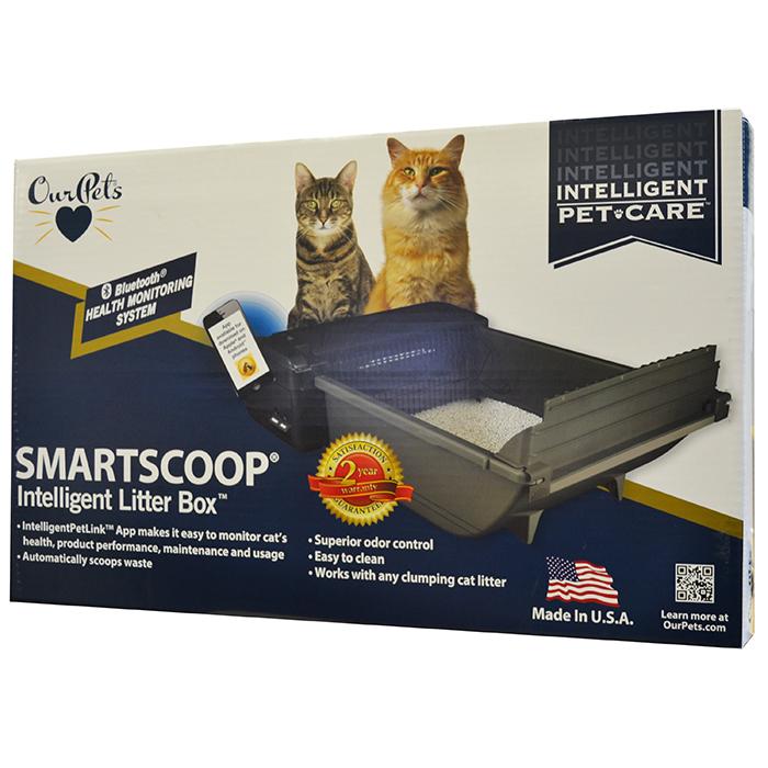 The SmartScoop ®– Intelligent Litter Box uses infrared technology to sense when your cat enters and exits the box and engages the scoop mechanism accordingly, scooping the waste into a waste bin and keeping the litter box clean. The litter box’s monitoring features, which are sent via Bluetooth® to the IntelligentPetLinkTM smartphone app, report: