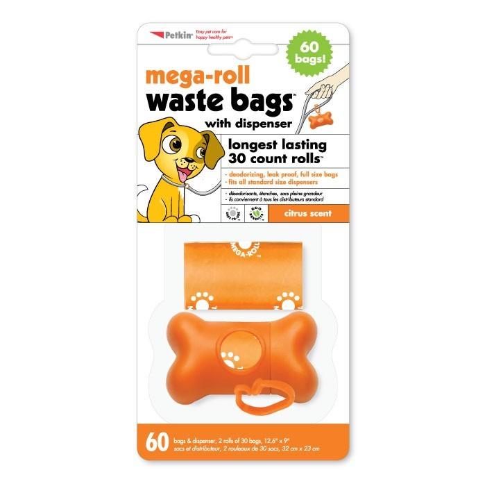 Mega-Rolls by Petkin fit standard dispensers, with twice the bags per roll Citrus scented, leak proof, standard size bags.