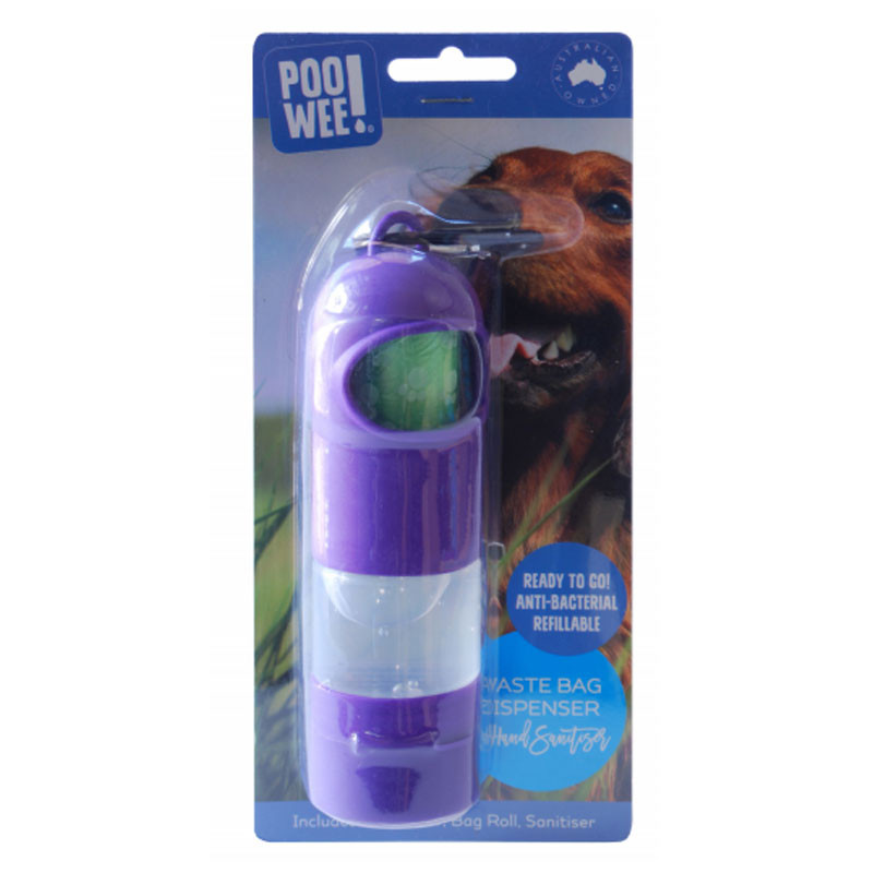 Be ready for walk with the all-in-one PooWee! Waste bag dispenser with sanitiser.