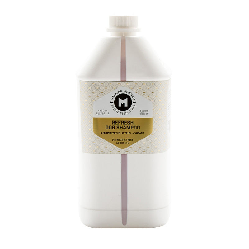 Benefits: Free from harsh synthetic chemicals, Melanie Newman Salon Essentials Refresh Shampoo contains vitamin enriched Avocado oils and organic essential oils of Australian Lemon Myrtle and Citrus, providing a clean, fresh smelling coat with a natural shine.