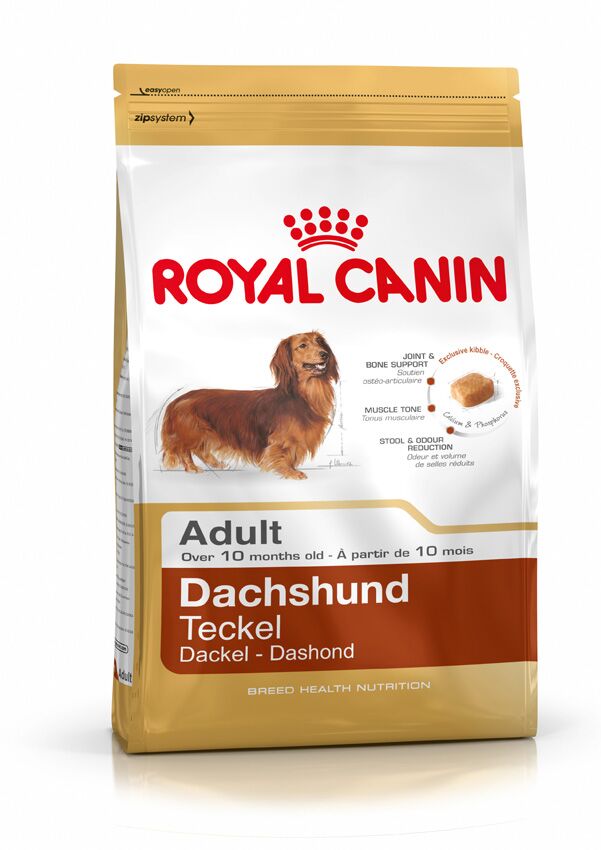 Contributes to supporting the Dachshund’s bones and joints (short limbs and vertebrae which are subjected to severe mechanical stresses) thanks to a specific formula aimed at maintaining ideal weight and an adapted content of calcium and phosphorus.